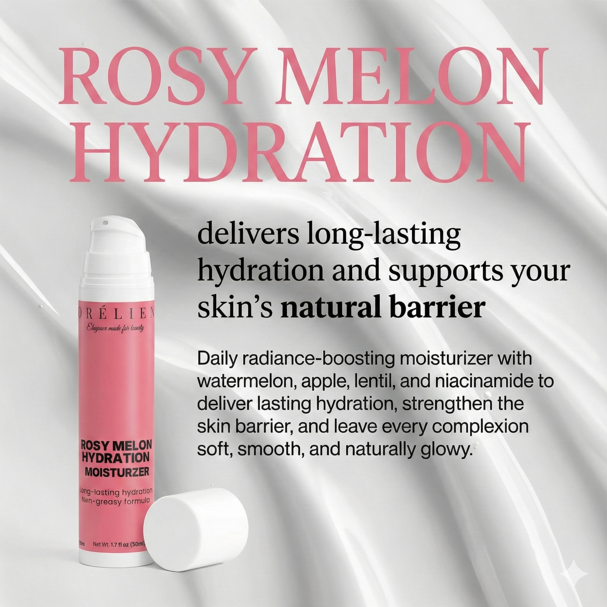 Watermelon, Apple & Lentil Fruit Extracts – A hydrating trio that helps boost moisture, soften texture, and promote a fresher, more radiant-looking complexion.